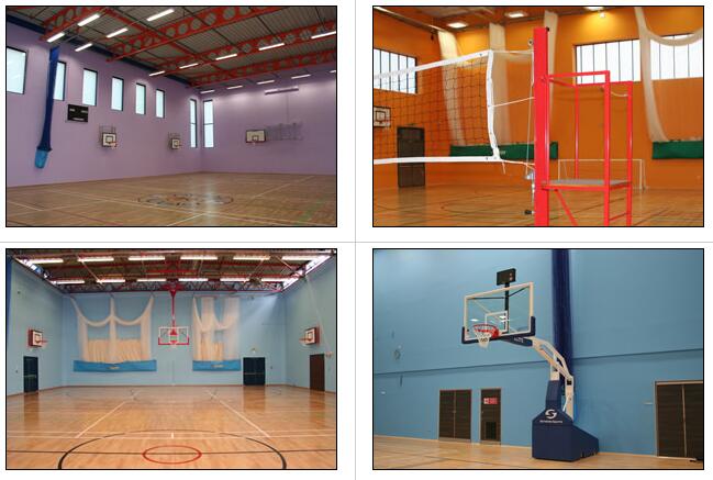 一般體育館墻壁都會(huì)建議選擇一種對(duì)比色的非分心色,例如選擇綠色或藍(lán)色作為彩繪墻壁。在需要白色背景的地方,如室內(nèi)板球,建議白色帆布屏幕來(lái)突出板球。
